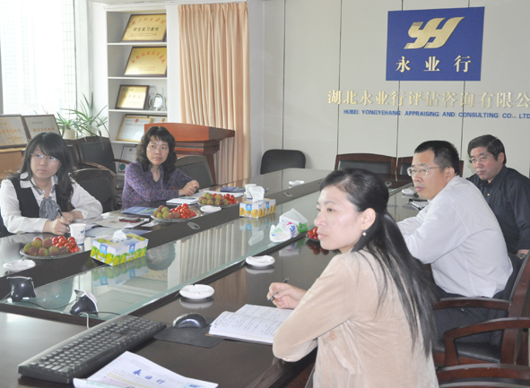 永业行总裁潘世炳、副总裁肖锋等对叶处长一行予以了热情接待。潘总客观阐述了将武汉打造成中部中介服务业中心的必要性和重要性,以及武汉中介服务业的基本情况。针对目前武汉中介服务业发展过程中存在的一些问题,潘总提出了“将中介服务业发展纳入政府规划,借两型社会建设机会先行试点改革管理体制”等建议。此外,他还向叶处长一行简单介绍了永业行的基本现状、行业地位、发展战略及企业愿景等。叶处长等表示,永业行作为中介服务业的一员,在湖北省评估咨询行业中处于领先地位,为武汉市经济社会发展起到积极的作用;永业行总裁潘世炳提出的“打造武汉为中部中介服务业中心”的建议对武汉中介服务业的发展而言具有一定的战略意义。武汉市发改委服务业发展处将对中介服务业发展过程中存在的问题逐一核实并尽力予以解决,为具有发展前景的中介服务企业提供政策和资金扶持,促进企业永业行和武汉两型社会建设的进程。